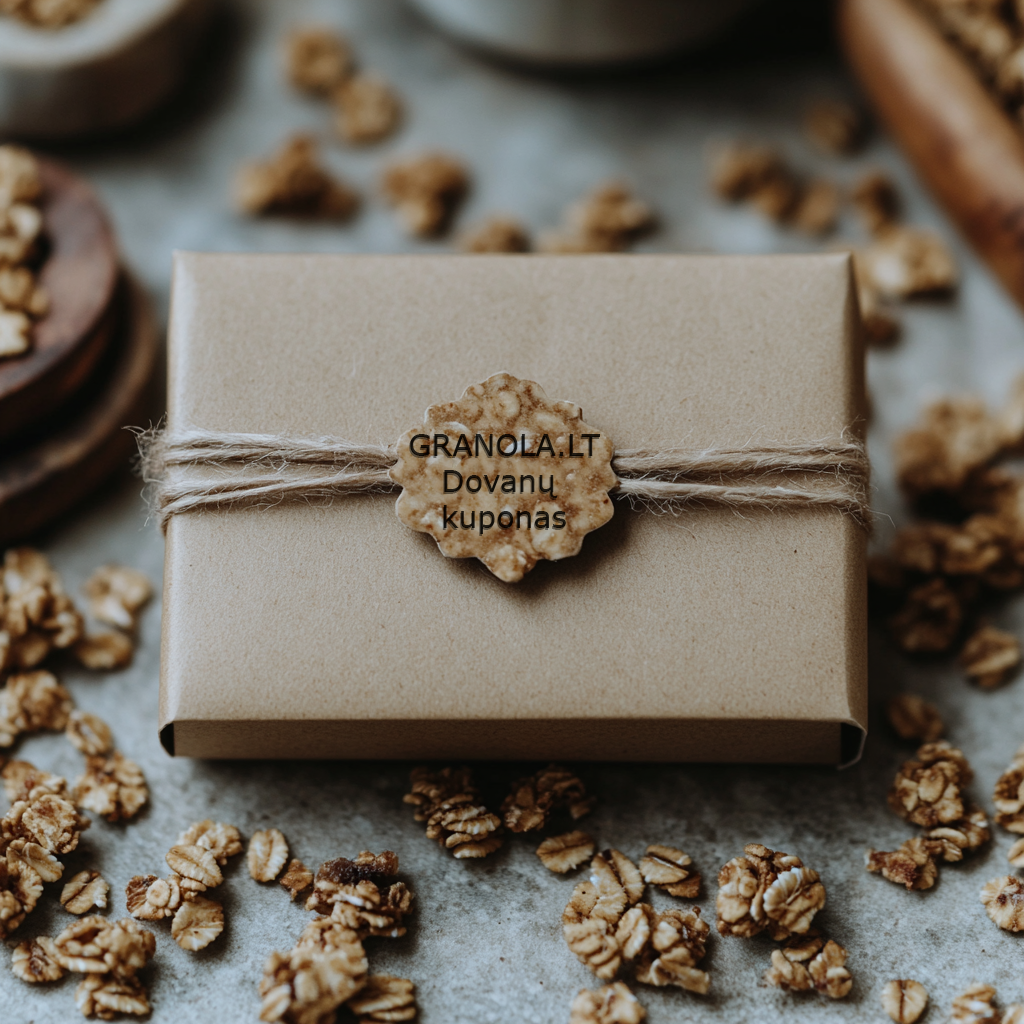 Ieškai dovanos, kuri nustebintų ir pradžiugintų? Padovanok granolos dovanų kuponą – sveiką, gardžią ir natūralią staigmeną! Gavėjas galės išsirinkti mėgstamiausią rankų darbo granolą, praturtintą riešutais, sėklomis, džiovintais vaisiais ar šokoladu.